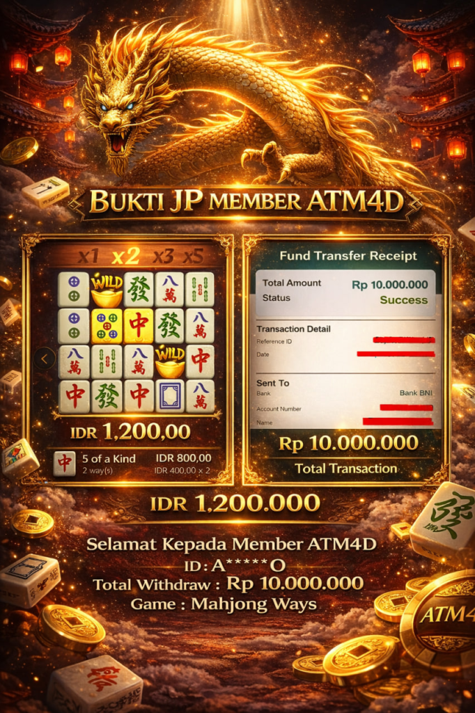 Jangan lewatkan kesempatan untuk meraih kemenangan besar. Daftar sekarang di ATM4D dan rasakan pengalaman bermain slot terbaik yang pernah ada! Putar gulungan, menangkan jackpot, dan jadilah bagian dari komunitas pemain sukses kami!