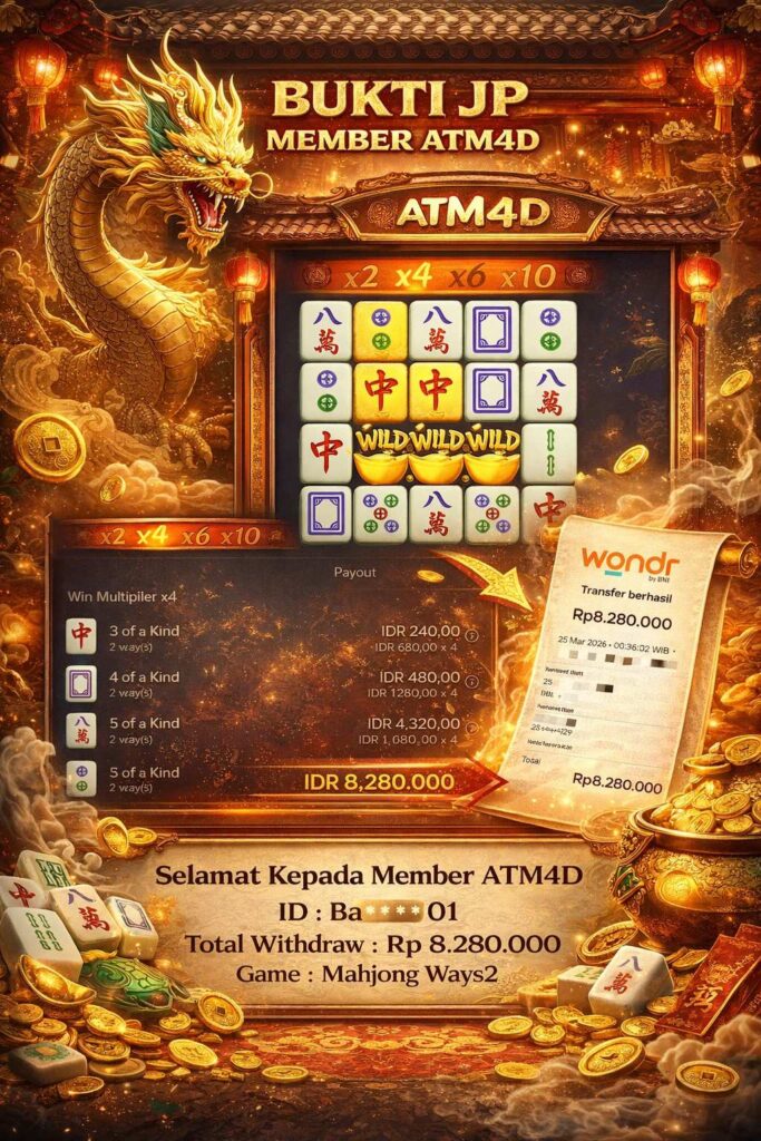 Jangan lewatkan kesempatan untuk meraih kemenangan besar. Daftar sekarang di ATM4D dan rasakan pengalaman bermain slot terbaik yang pernah ada! Putar gulungan, menangkan jackpot, dan jadilah bagian dari komunitas pemain sukses kami!
